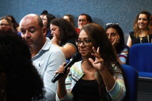 Os participantes também tiveram a oportunidade de interagir e contribuir com discussões durante os momentos abertos para o público, onde puderam fazer perguntas aos palestrantes e compartilhar suas considerações sobre os temas abordados.