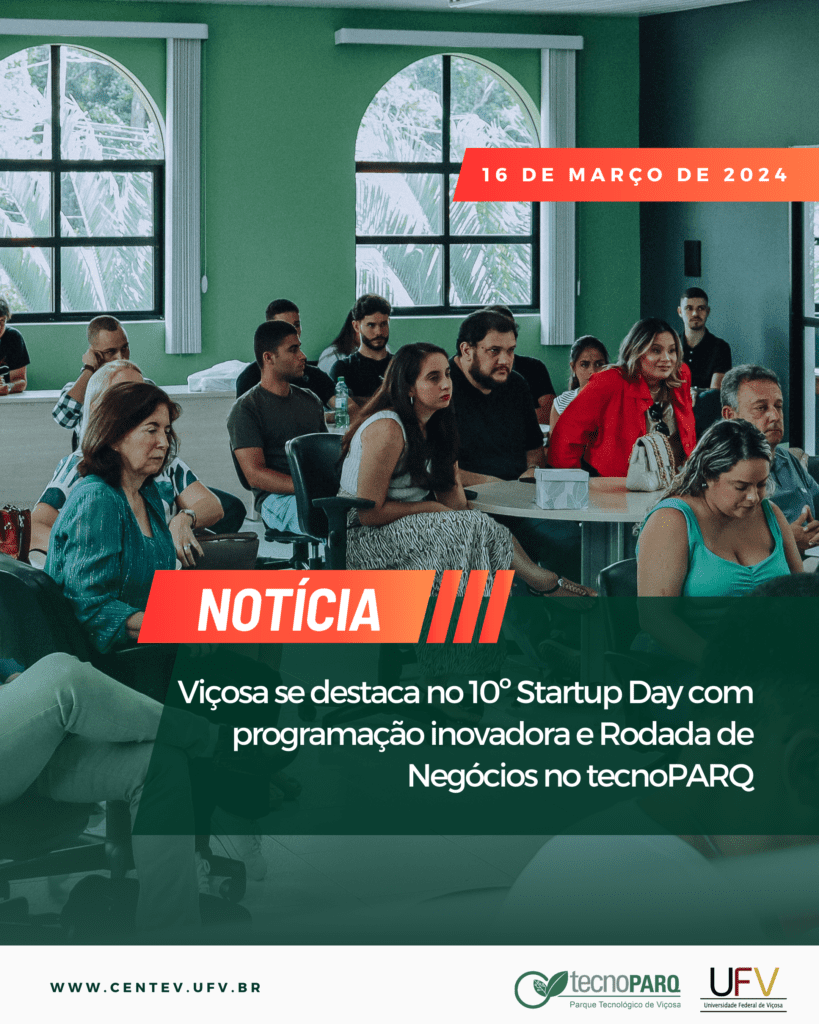 No dia 16 de março de 2024, o tecnoPARQ – Parque Tecnológico de Viçosa – foi o epicentro do 10º Startup Day, um encontro que reuniu startups de todo o Brasil para uma jornada intensa de empreendedorismo e inovação. Sob a organização do tecnoPARQ, em parceria com o Sebrae e o ecossistema de inovação local, […]